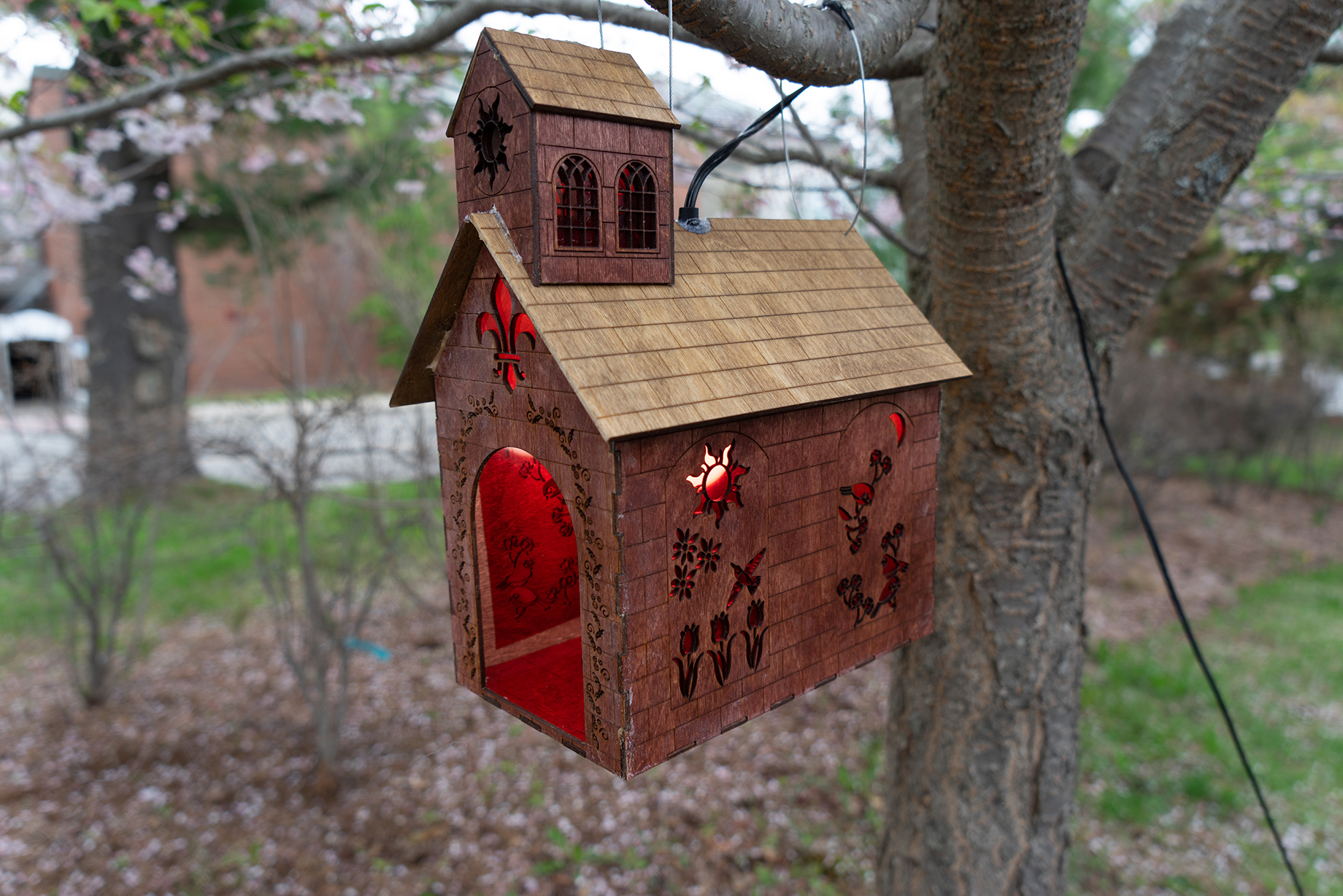 Electrical Engineering Technology students of EET 115 Creative AutoCAD recently installed their final laser-cut, and 3D printed lamp creations in the MaineBound Garden (Facing the Collins Center for the Arts). Creative designs and conceptual approaches to 3D modeling and laser cutting highlight intersections of art and technology at UMaine!