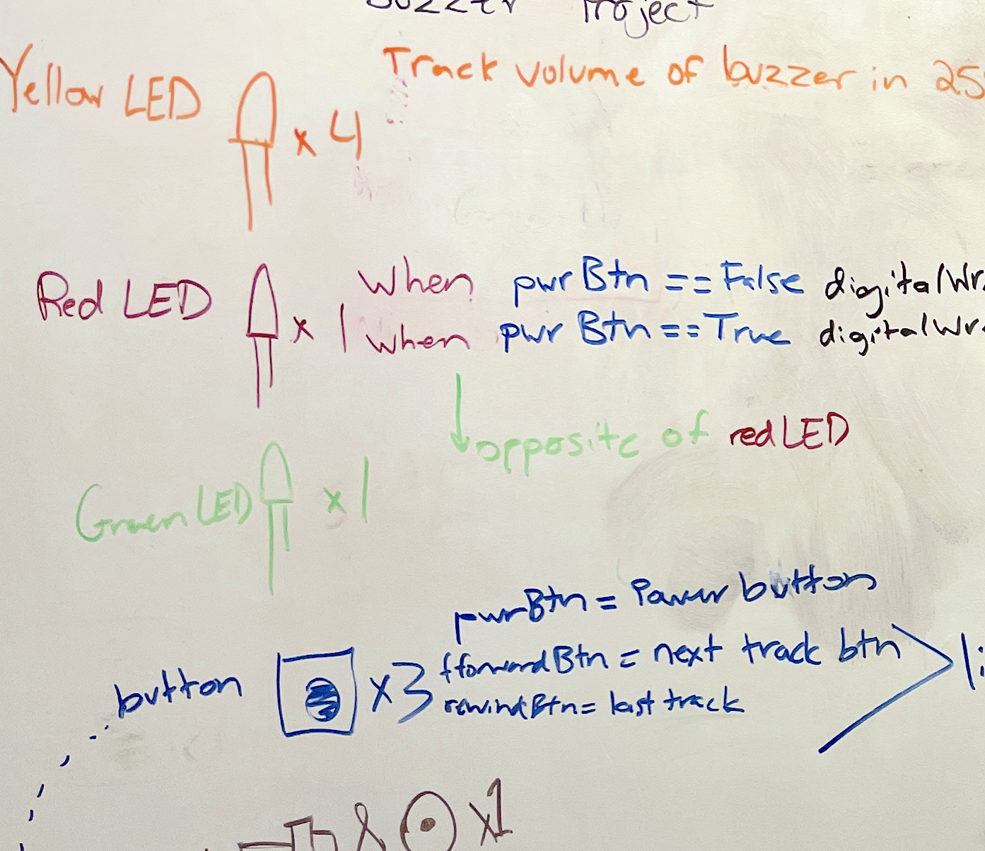 Color-coded schematic notes on a whiteboard created by MERITS Scholar Colby Ting