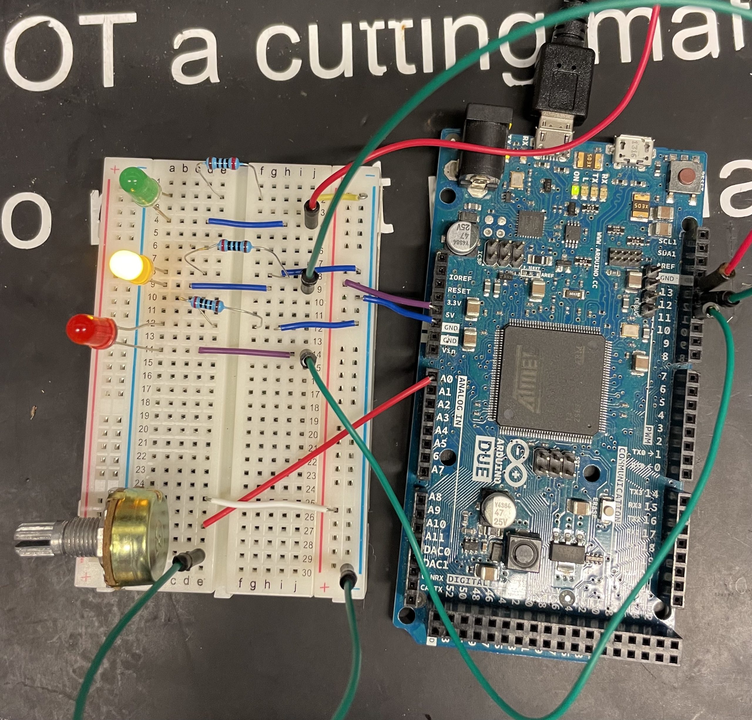 A microcontroller wired to operate light and sound